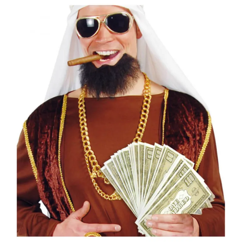 Bolsa con 75 billetes. ¡¡¡Ésto sí que son Petrodólares!!! Perfectos como complemento del disfraz de Jeque Árabe o Magnate del petróleo. Fajo de billetes o Dinero.