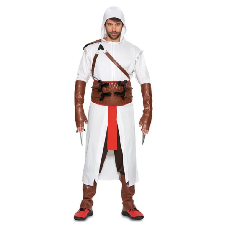 Un fantástico disfraz para hombre del asesino más famoso del mundo del videojuego, Altaïr Ibn-La’Ahad, el protagonista de varios de los videojuegos de la saga Assassin’s Creed.