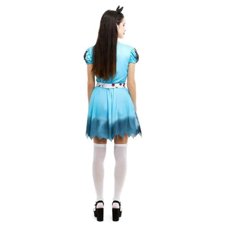 Sumérgete en una aventura aterradora con este disfraz de Alicia Zombie. Perfecto para aquellas que buscan destacar en una fiesta de Halloween o un evento temático, este conjunto presenta un vestido azul clásico con un toque espeluznante que no pasará desapercibido.