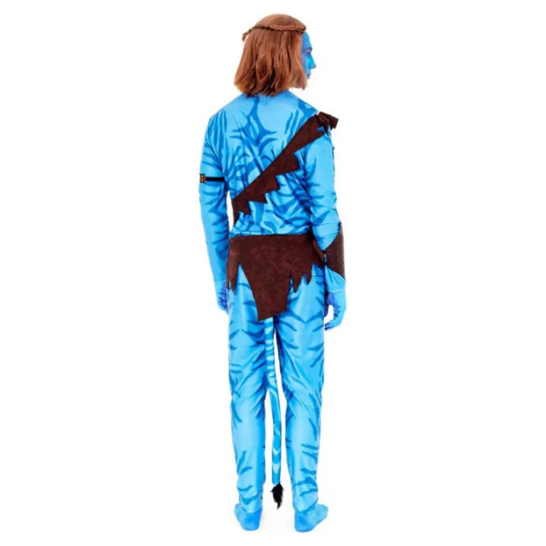Transforma tu experiencia de disfraz en una auténtica aventura con nuestro disfraz de Avatar para hombre. Este conjunto único incluye una camiseta y pantalón de vibrante color azul con detalles de rayas que evocan el icónico aspecto de los habitantes del planeta Pandora. El cinturón marrón ofrece un contraste perfecto, acompañado de una banda y una cola que añaden autenticidad al conjunto. Los brazaletes completan este impresionante atuendo, asegurando que estés listo para cualquier evento o fiesta temática.