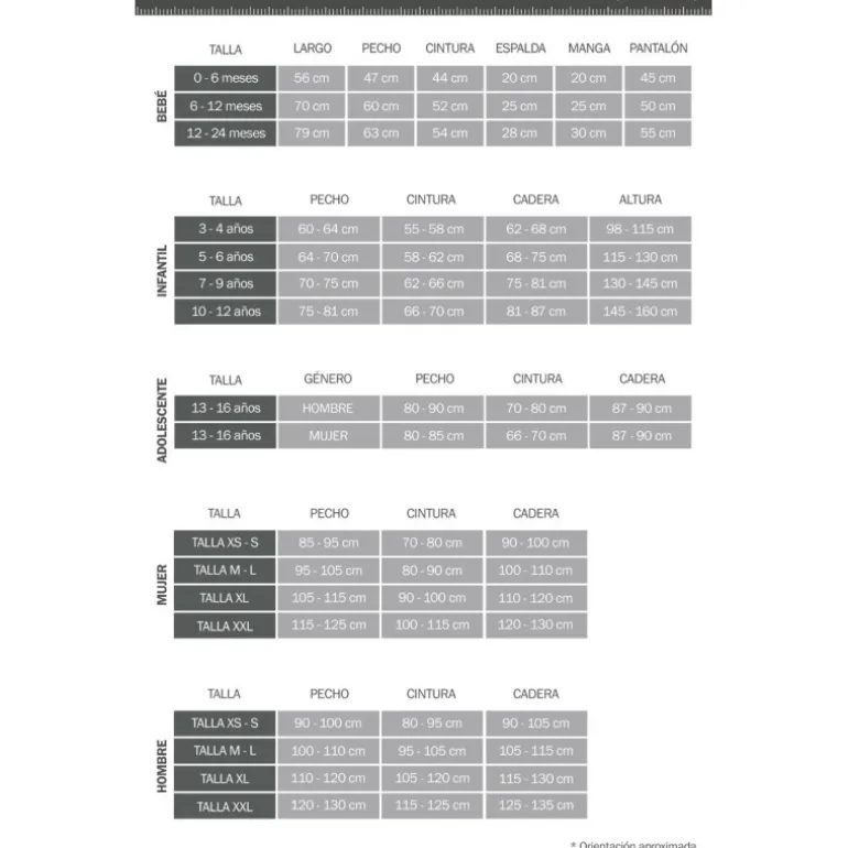 | Size | Talla de 10 a 12 años, Talla de 3 a 4 años, Talla de 7 a 9 años |
