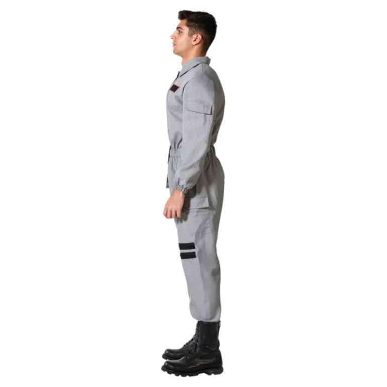 Prepárate para atrapar espectros con este disfraz de Exterminador de Fantasmas para hombre. El conjunto incluye un maillot enterizo de color gris claro, diseñado con un ajuste cómodo y una elasticidad que te permitirá moverte con facilidad. El traje está adornado con detalles negros en las mangas y las piernas, y cuenta con múltiples bolsillos para dar un aspecto auténtico y funcional.