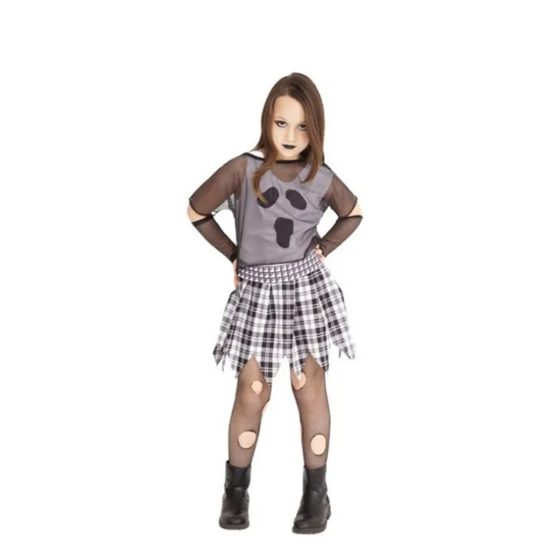 Disfraz de Fantasma Punky para niña. Incluye Camiseta, cubre camiseta, mitones, cinturón, falda, medias. No incluye Calzado