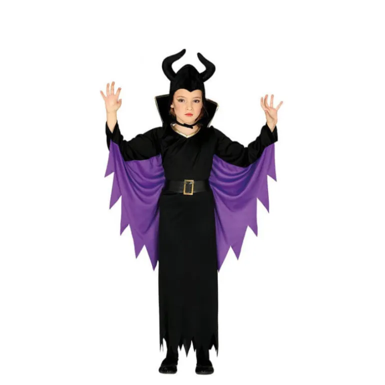 Disfraz de Maléfica para niña. Incluye gorro con cuernos y vestido con mangas. No incluye medias ni calzado. Perfecto en fiestas del terror como Halloween. ¡Compra en un ecommerce que cumple con todas las normativas de la Unión Europea, compra en !
