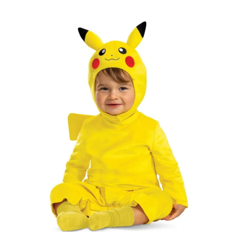 Transforma a tu pequeño en el adorable Pikachu con este disfraz oficial de Pokémon. Perfecto para bebés y niños, el conjunto se distingue por su vibrante color amarillo que captura la esencia del icónico personaje. El disfraz incluye un mono completo acompañado de un gorro a juego con las características orejas puntiagudas y mejillas rojas de Pikachu, completando el look con una cola de lujo.