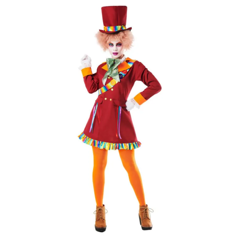 Conviértete en el centro de atención con este original disfraz de Sombrerera Loca para mujer. El conjunto incluye un vistoso sombrero rojo que añade un toque de fantasía y un colorido cuello y pajarita que aportan vitalidad al atuendo. La chaqueta roja con detalles de cinta multicolor en los bordes y botones dorados es el complemento perfecto para resaltar tu personalidad única. La cinta bandolera añade un detalle adicional a este llamativo disfraz.
