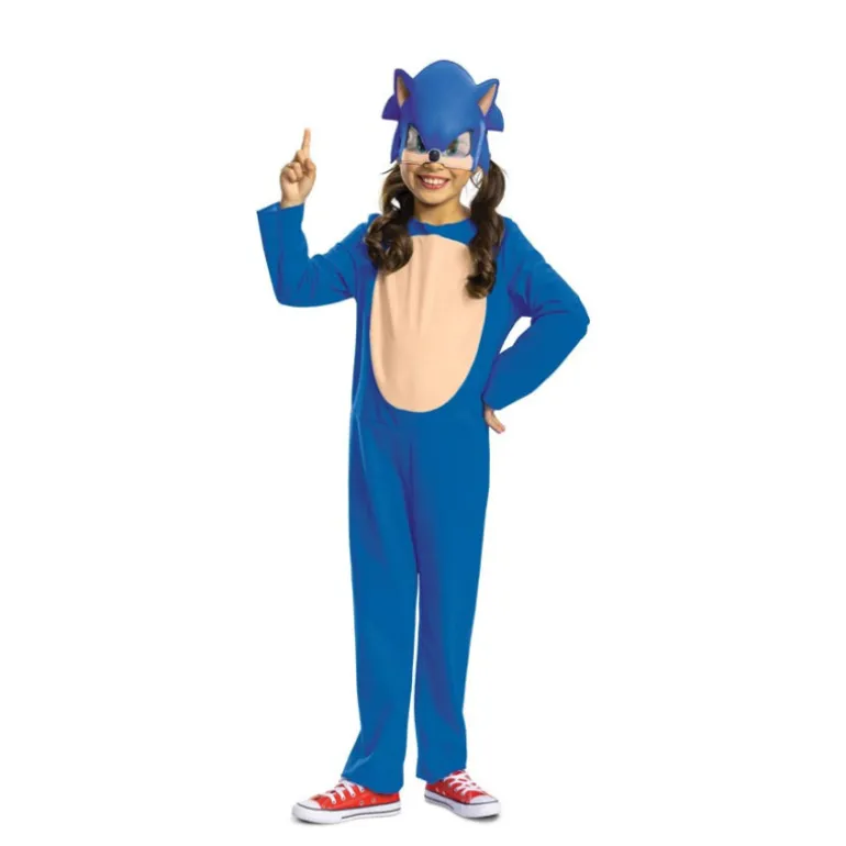 Transforma a los pequeños en el veloz erizo de los videojuegos con este disfraz de Sonic azul para niños. El conjunto incluye un mono completo y una máscara que captura fielmente el estilo icónico del personaje. El mono es de un vibrante azul con un frente de color beige imitando el vientre de Sonic, y está diseñado con un ajuste cómodo para permitir libertad de movimiento mientras los niños juegan y corren como su héroe favorito.