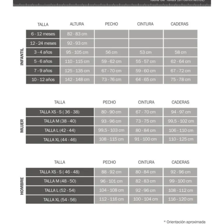 | Size | Talla L mujer42/44, Talla M mujer38/40, Talla S mujer36/38 |