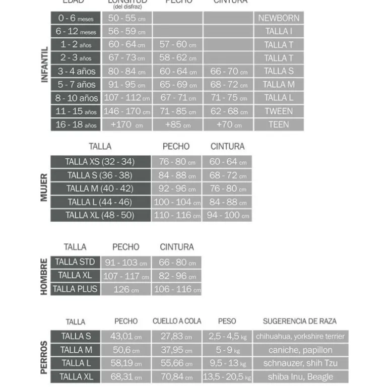 Está disponible en tallas desde la S hasta la XL, por lo que te recomendamos que no te pierdas la guía de tallas que hemos puesto en una de las fotos para que puedas ver sus medidas exactas. Y no olvides pasarte por la sección de ACCESORIOS PARA DISFRACES y completar el tuyo como un profesional!