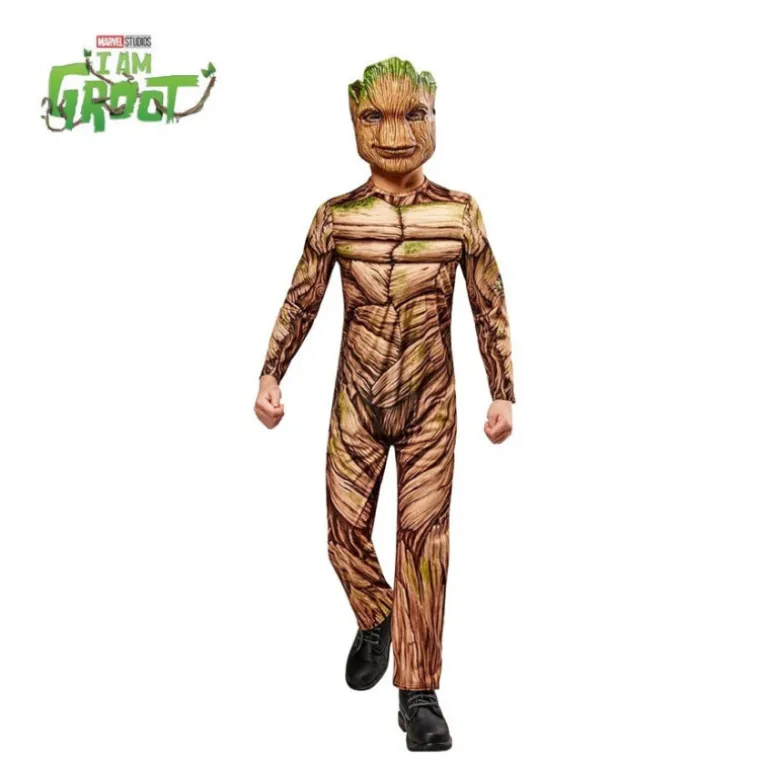 Transforma a tu pequeño en el intrépido Groot de Guardianes de la Galaxia con este disfraz musculoso deluxe para niño. El conjunto incluye un jumpsuit acolchado con un detallado estampado digital que simula la textura de madera característica de Groot. La máscara de foam complementa el look, asegurando que tu hijo destaque en cualquier ocasión.
