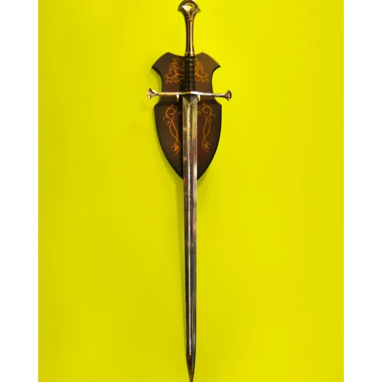 Tiene en su filo y empuñadura las runas elficas que la hacen única y viene con la vaina realizada en imitación de cuero viejo y acero, con una calidad excepcional en materiales y acabados. Es la réplica no oficial más parecida a la utilizada en las películas que vas a encontrar.
