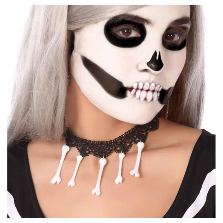Gargantilla con Encaje y Huesos. Perfecto para fiestas del terror como Halloween. ¡Compra con total seguridad y confianza en , un comercio online que cumple con todas las normativas de la U.E.!