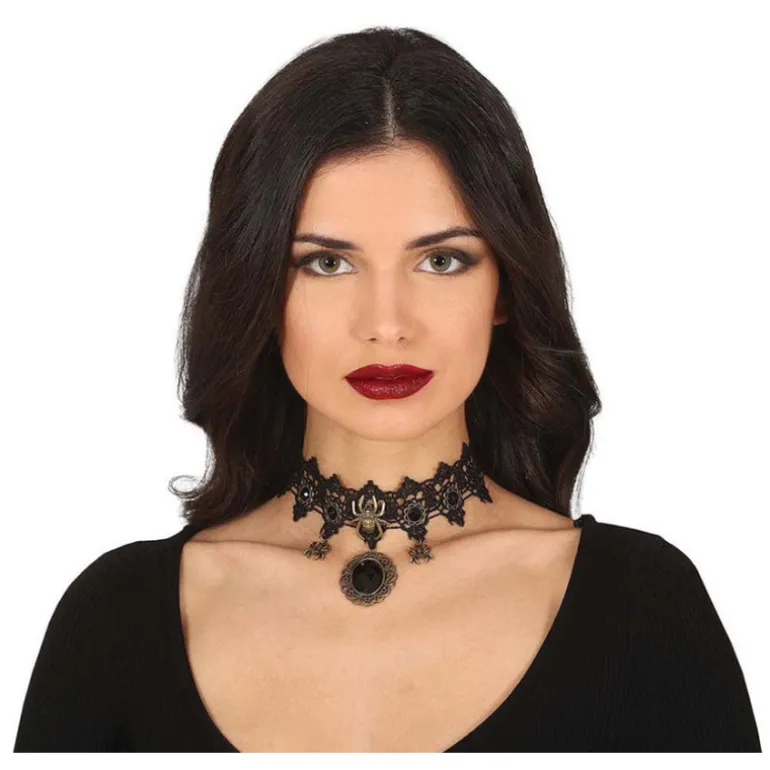 Gargantilla con Piedra Negra y Arañas