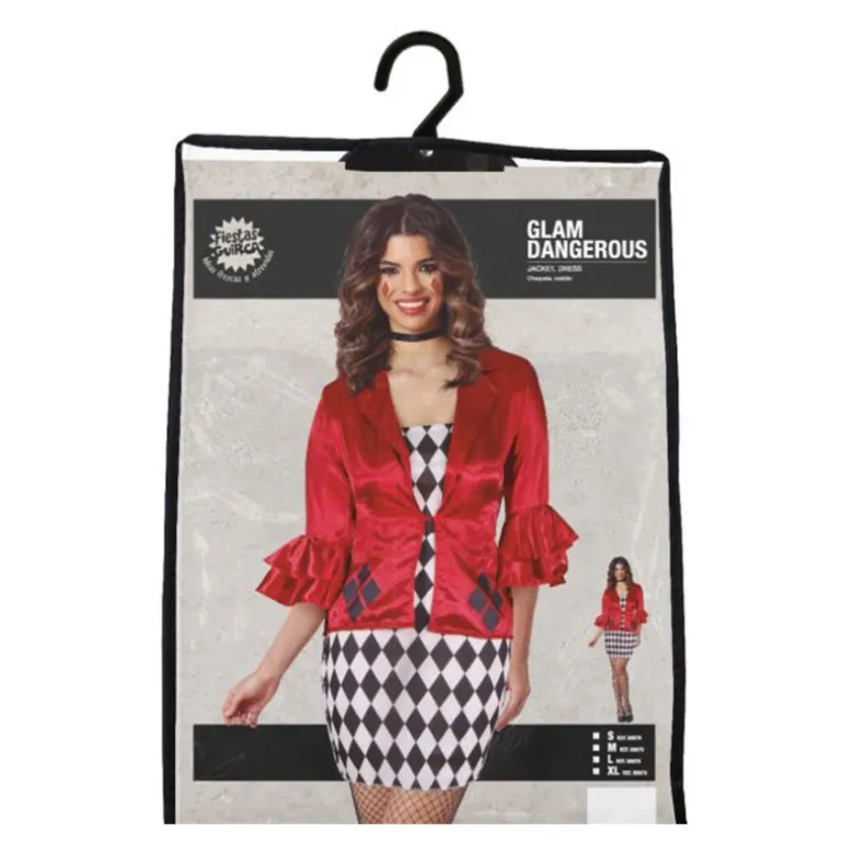 Transforma tu estilo con este disfraz de Harley Quinn roja para mujer, perfecto para deslumbrar en cualquier evento temático o fiesta de disfraces. Este conjunto incluye una chaqueta roja satinada con un elegante diseño de volantes en las mangas que añade un toque distintivo y audaz. El vestido adjunto presenta un patrón de rombos en blanco y negro, evocando el icónico estilo del personaje.