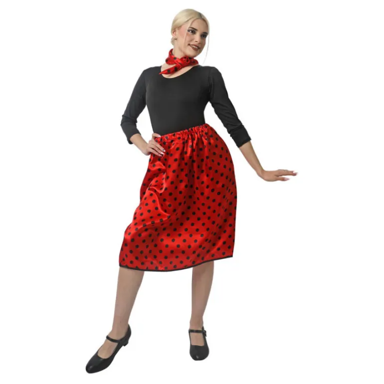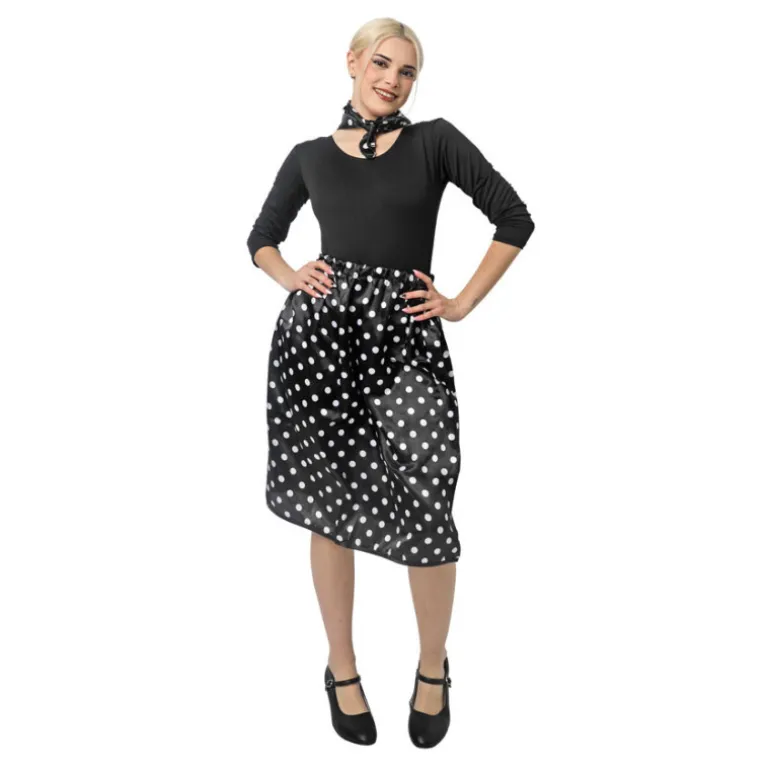 Evoca el estilo icónico de los años 50 con este encantador kit de rasete para mujer. El conjunto incluye una falda y un pañuelo, perfectos para un look retro auténtico. La falda está disponible en colores vibrantes como rojo, negro, blanco, celeste y fucsia, todos adornados con clásicos lunares blancos o negros que añaden un toque vintage. Con un contorno ajustable de entre 56 cm y 116 cm y un largo de 62 cm, esta prenda se adapta cómodamente a diversas tallas. El pañuelo, de 48 cm de largo y 46 cm de ancho, complementa perfectamente cualquier atuendo.