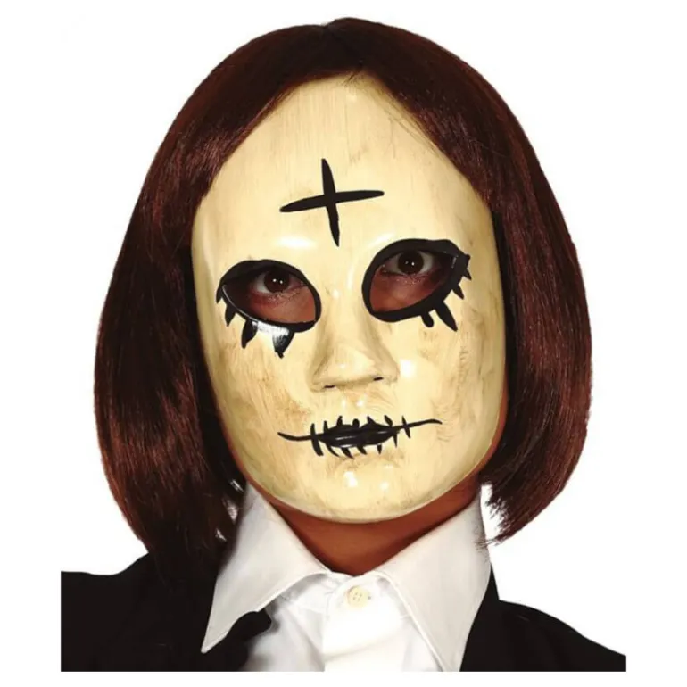 Máscara de Asesina con Cruz. Ideal para fiestas de terror como puede ser halloween. ¡Compra con total seguridad y confianza en , un comercio online que cumple con todas las normativas de la U.E.!