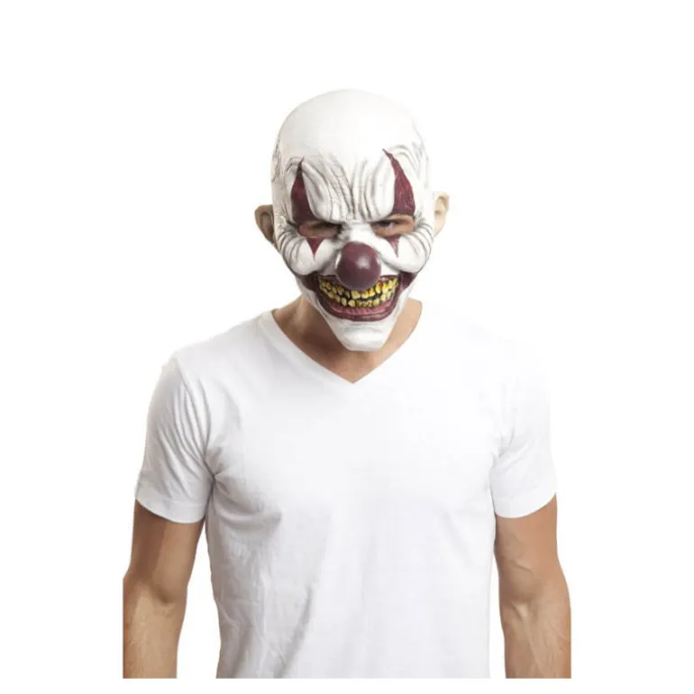 Máscara de payaso malvado. Vas a dejar a todos temblando de miedo cuando te vean con ésta máscara y además, puedes combinarla con alguno de nuestros disfraces que tenemos como payaso diabólico, payaso del pánico, etc… Recuerda que En tenemos TODO lo que necesites para tus fiestas de Carnaval, Halloween y Navidad.