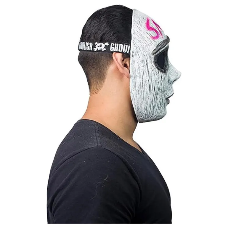 Fabricada al 100% en látex, su material garantiza comodidad y flexibilidad. La máscara es de talla única, con medidas de 27 x 24 x 3 cm, lo que asegura un ajuste cómodo para la mayoría de los adultos.