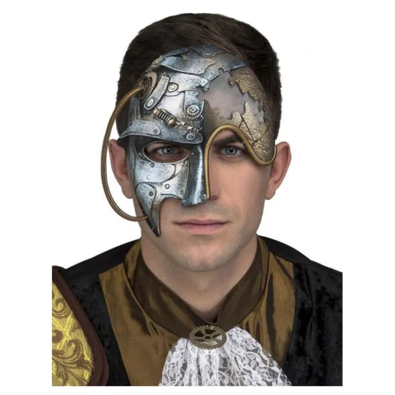 Media Máscara Steampunk con Cable. El Steampunk es una estética de origen e inspiración Victoriano mezclado con tecnología futurista, este movimiento creció bastante a partir de que se escribiesen novelas como La guerra de los mundos o La máquina del tiempo de H.G. Wells. Perfecto en fiestas del terror como Halloween. ¡Compra con total seguridad y confianza en , un comercio online que cumple con todas las normativas de la U.E.!