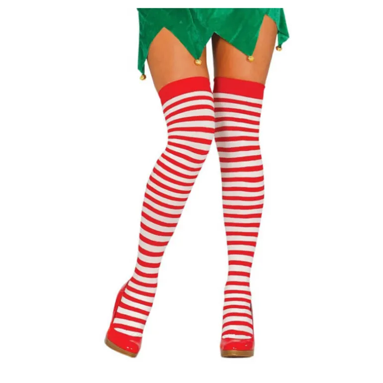 Medias liga de Elfo a rayas. Estas medias son ideales como complemento para los disfraces de Elfa, Mamá Noel, Duende, Marinera o Caperucita.