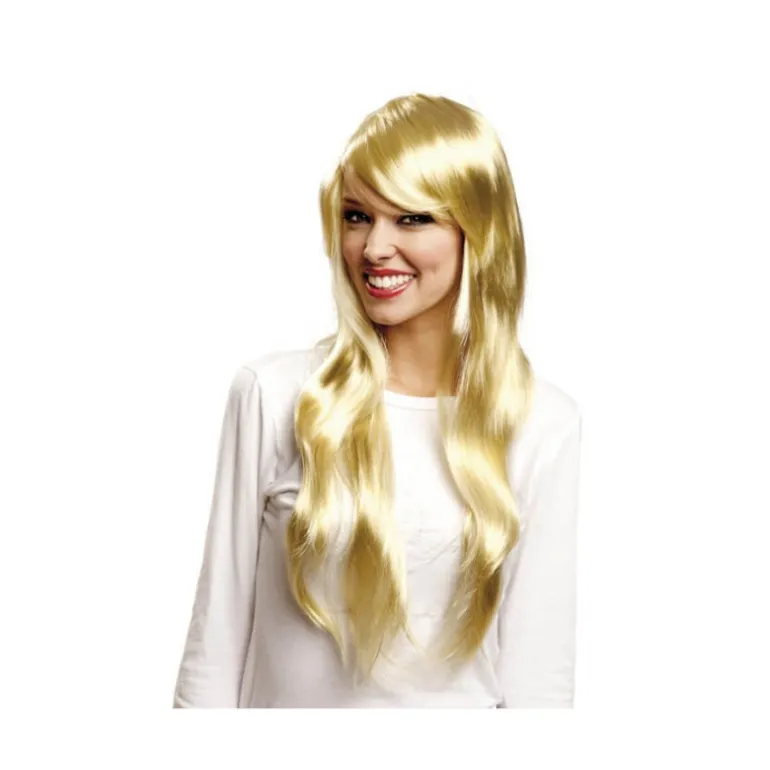 Peluca Melena rubia ondulada con flequillo. Ideal para combinar con nuestros disfraces de Hada, Princesa, Reina del mal, Hechicera, etc… ¡No te lo pienses y compra ahora!