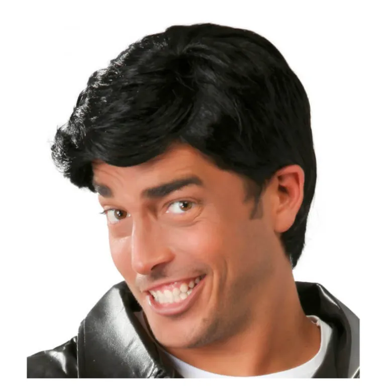 Peluca negra Danny o Rockero de hombre. Envase en caja. Te parecerás a Danny Zuko en la película de Grease. Hay que ver cómo se parece el chico de la foto a Arturo Valls, el presentador más divertido de la Tele.