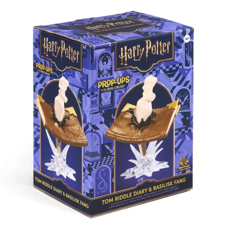 Descubre un artículo de colección único que captura una de las escenas más icónicas de la saga Harry Potter. Este conjunto incluye una réplica detallada del diario de Tom Riddle atravesado por un colmillo de basilisco. El diario, de color marrón, parece auténtico gracias a su textura y detalles dorados en las esquinas. El colmillo, de un tono marfil, se alza imponente sobre una base transparente que simula el impacto del ataque. Con unas medidas de 20,2cm X 15,2cm X 12,2cm, es una pieza perfecta para destacar en cualquier colección. Fabricado por The Noble Collection, con licencia oficial.